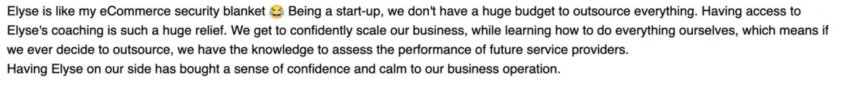 I’m Elyse Collat, and I’ve helped brands consistently get double and triple digit growth from $8K months to $100K+ months without a big team, fancy funnels, or hiring an agency.